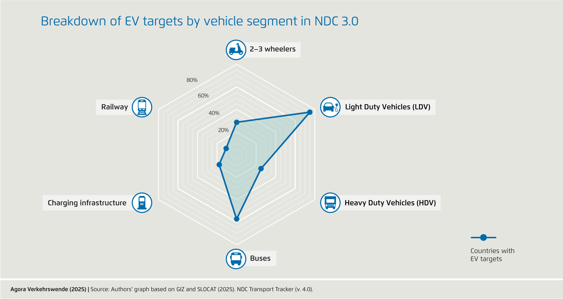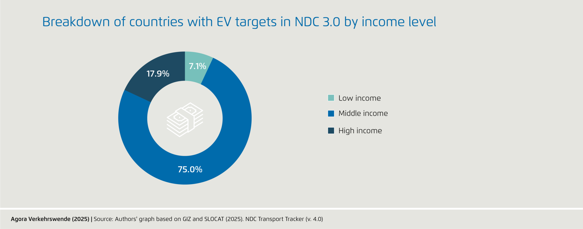 It is important to note that our analysis is based exclusively on the information contained within the submitted third-generation NDCs. Many countries have additional national strategies, targets, and measures detailed in dedicated policy documents, legislation, and national plans that may not be fully captured in their NDCs. Consequently, this review provides a specific window onto the commitments formalised within the United Nations Framework Convention on Climate Change (UNFCCC) process, which may not represent the entirety of a country’s national e-mobility landscape.