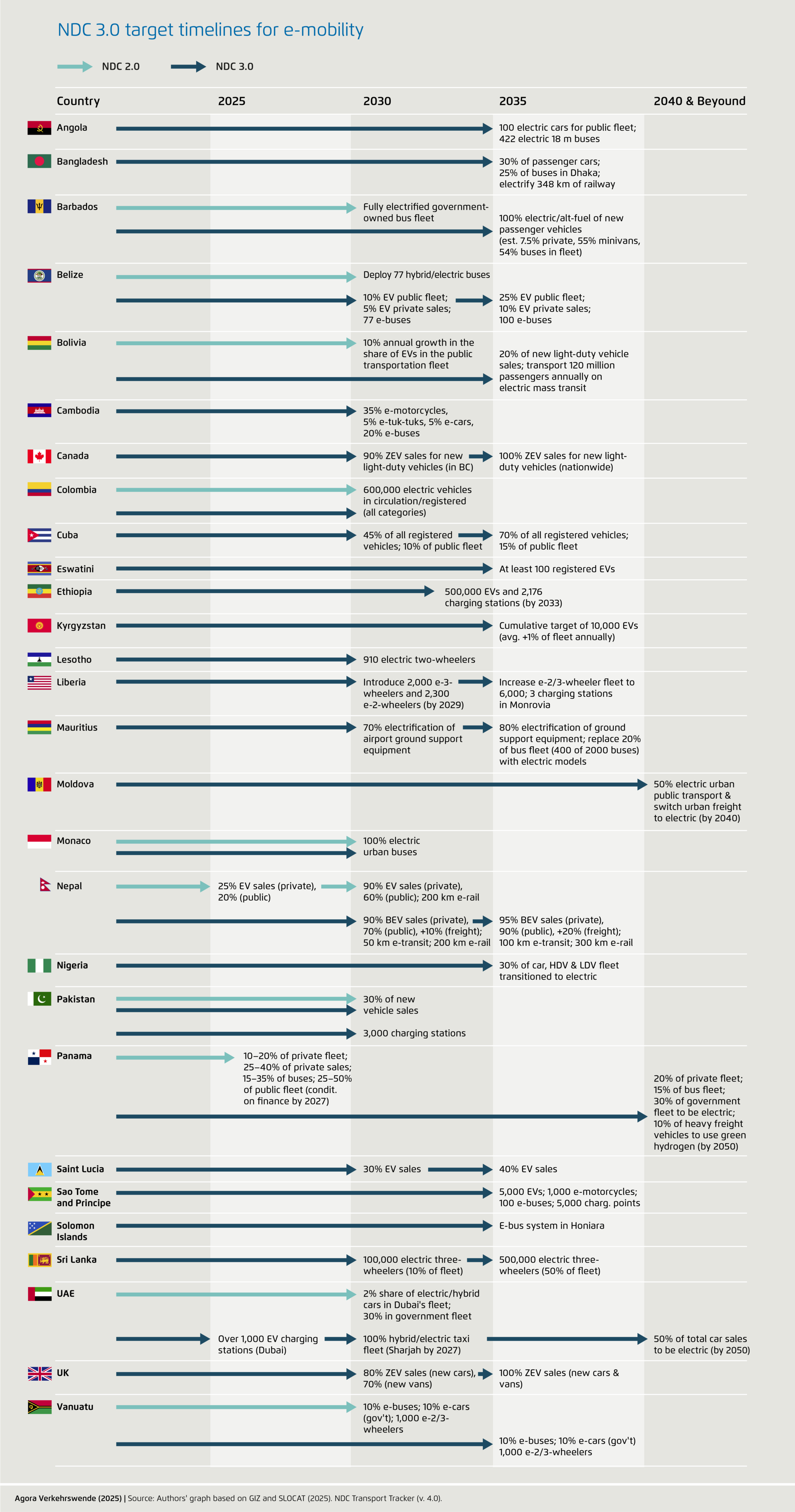 The following timetable provides a visual overview of national targets across all 28 countries with EV targets in the new round of NDCs.