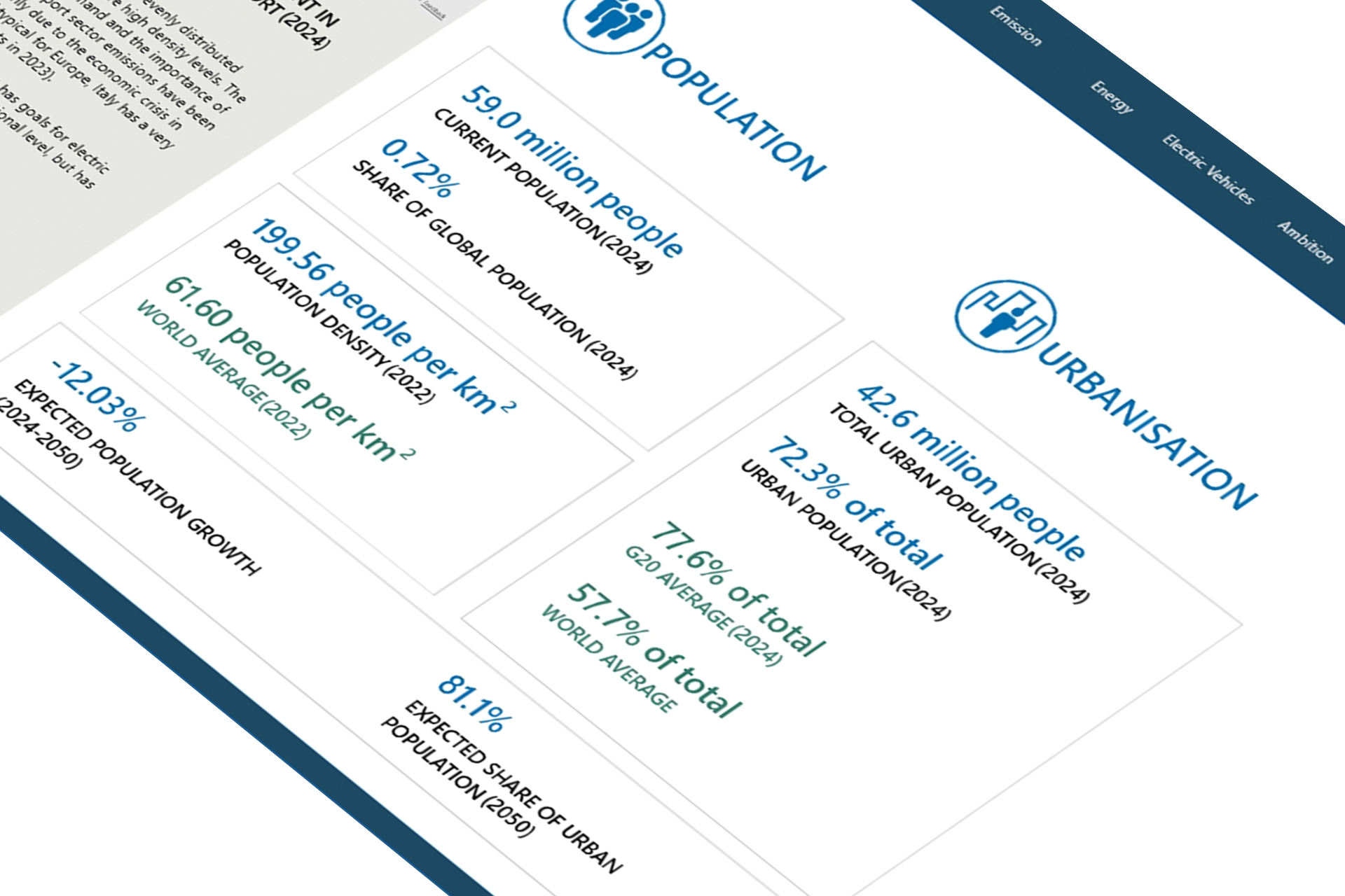 These findings emerges from the analysis “Towards Decarbonising Transport 2026 – A Stocktake on Sectoral Ambition in the G20” conducted by Agora Verkehrswende and GIZ (see link below). The findings are also showcased within the dashboard above - with digital country profiles that feature interactive infographics. The country profiles provide a detailed overview of transport-sector trends in individual G20 countries, including decarbonisation targets and policy measures to promote climate-neutral mobility. The dashboard integrates data on population, urbanisation, mobilty patterns, energy use, greenhouse gas emissions, electric vehicle deployment, national and NDC transport targets, biofuels, subsidies, hydrogen, batteries and relevant policies. It was developed in collaboration with GIZ.