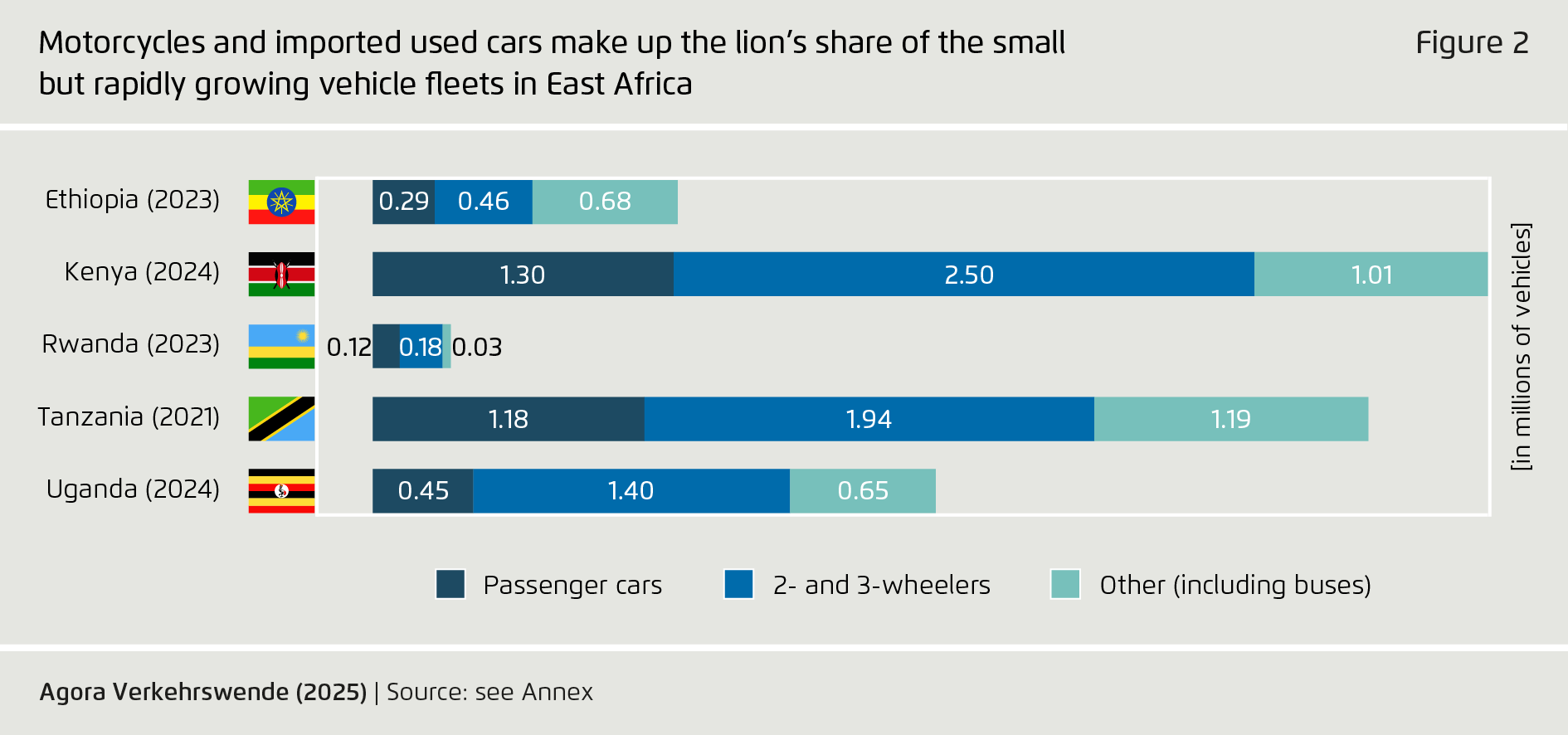 - Agora Verkehrswende (2025): Towards Electric Mobility in East Africa. Current Trends and Policy Approaches.